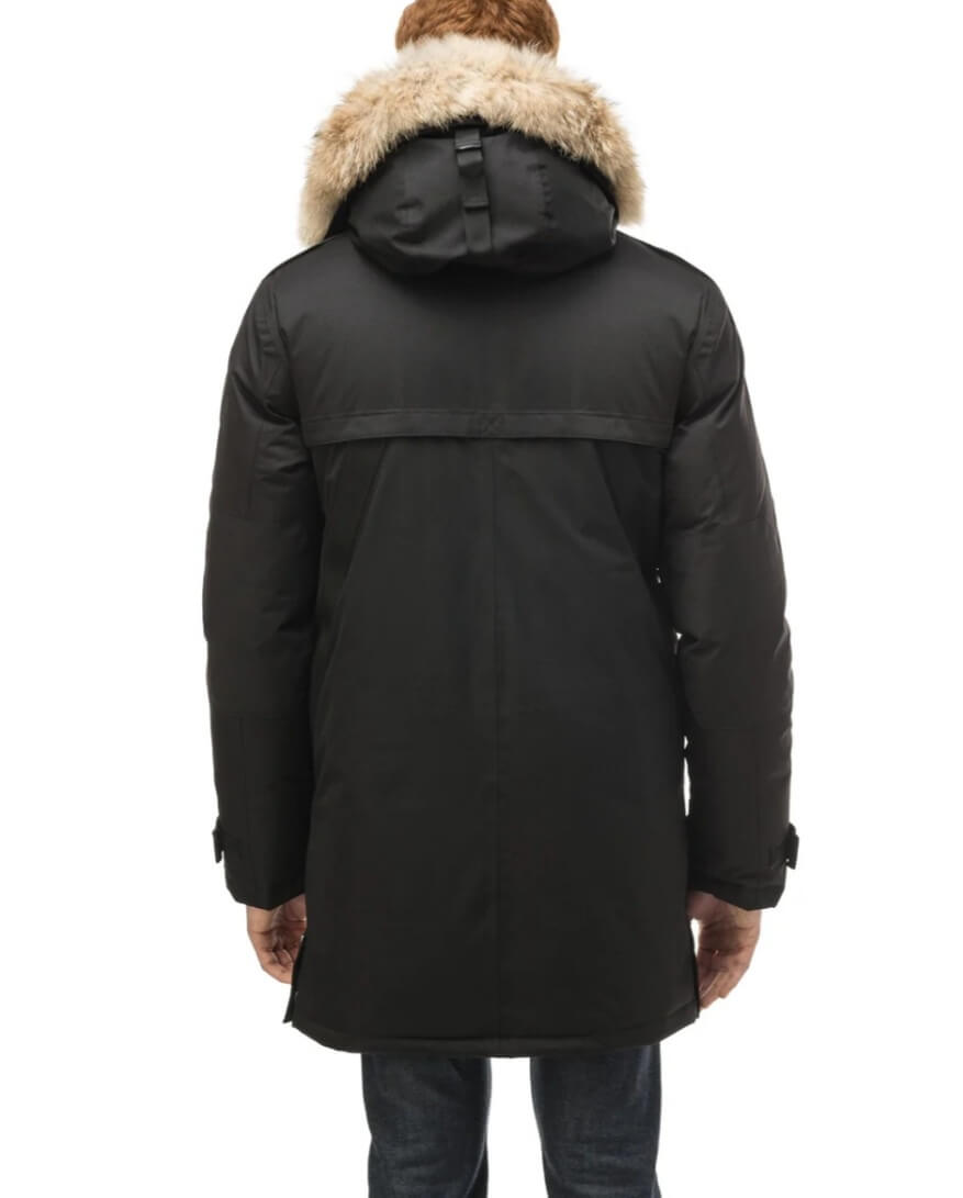 영하 30도에도 견딜수 있는 보온성을 기반으로 제작되었으며 방수 패딩으로 모자에 와이어가 들어있어 모양을 만들수 있고 후드와 코요테 퍼 탈부착이 가능합니다.